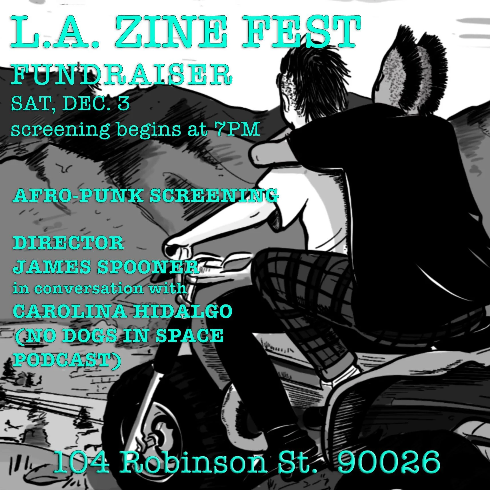 We are very excited to announce our fundraiser for next month, Saturday, 12/3!! James Spooner has so graciously agreed to be in conversation with Carolina from No Dogs in Space Podcast at The Robinson Space. PLUSSSSS, we’ll also be screening the Afro-punk documentary. Come through!